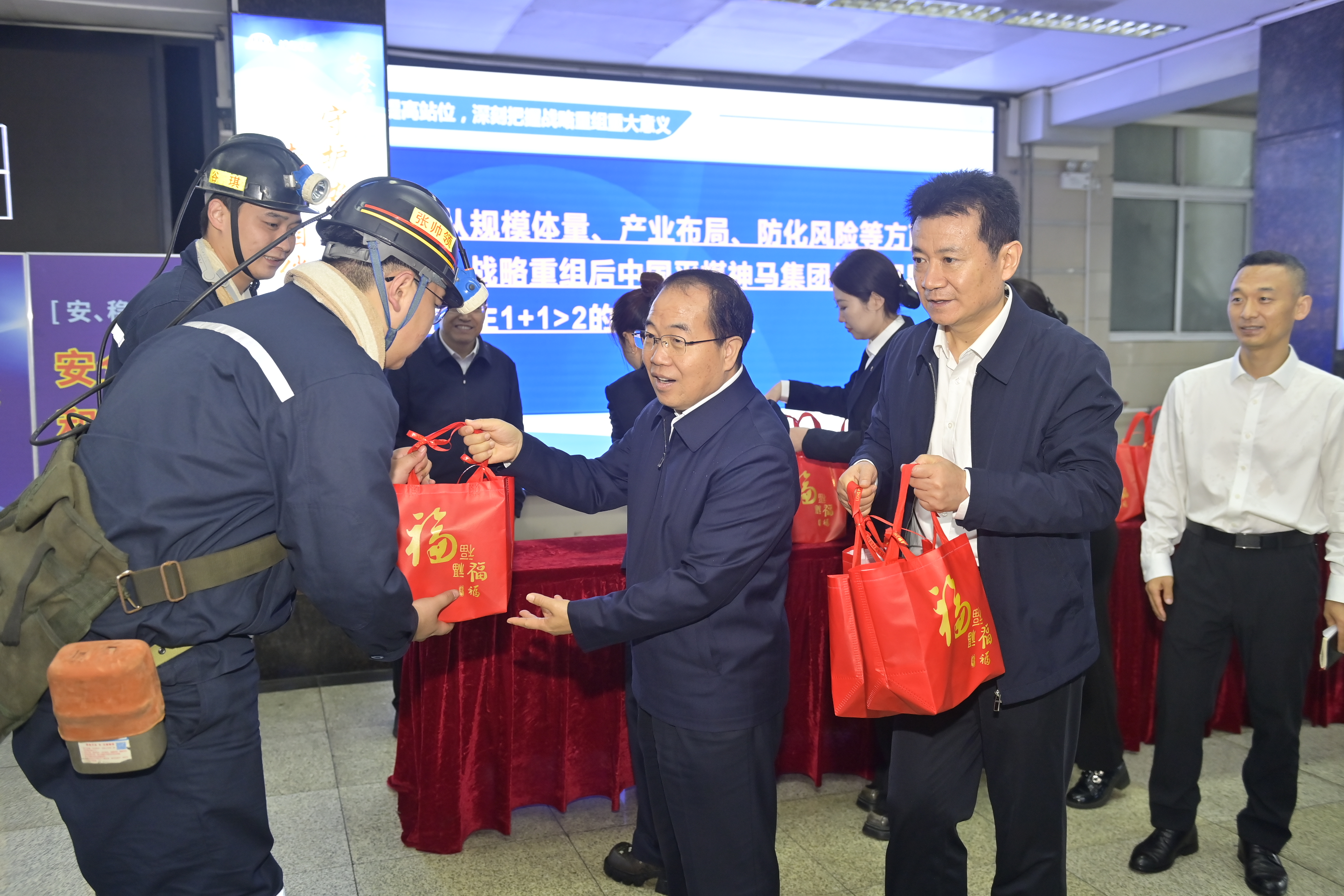 10月2日下午,中国平煤神马集团党委书记、董事长李毛,总经理、党委副书记、副董事长杨恒一行到河南能源永煤公司下属城郊矿、永城园区调研,亲切慰问节日坚守岗位干部职工,并与部分职工代表面对面交流。