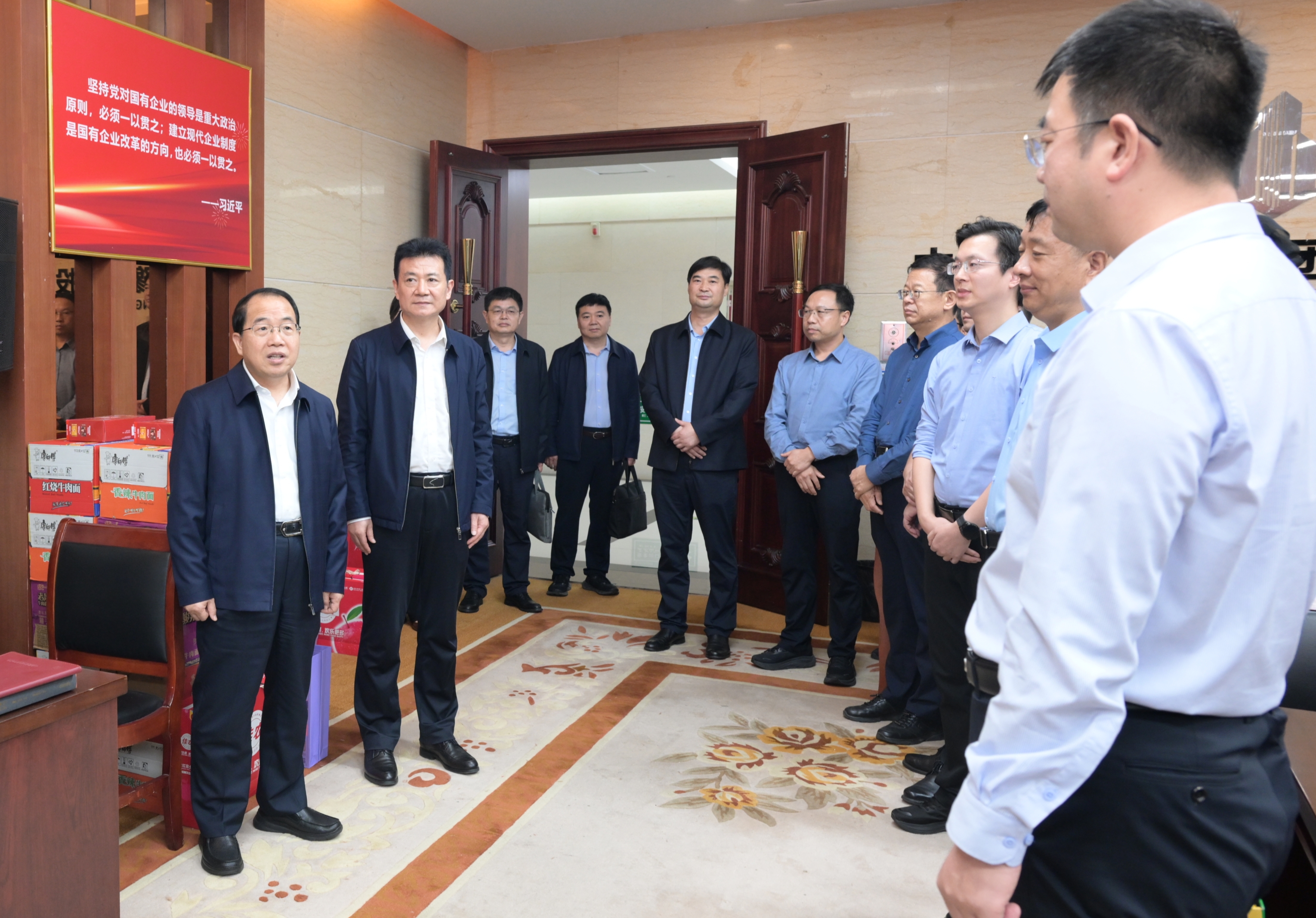 10月3日下午,中国平煤神马集团党委书记、董事长李毛,总经理、党委副书记、副董事长杨恒一行到河南能源、平煤神马战略重组工作专班调研,看望慰问专班工作人员,送上节日的美好祝福,勉励大家扛牢重任、履职尽责,以良好精神状态和过硬能力作风推进战略重组专班各项工作,为集团“稳大局、强融合、开新局”贡献力量。