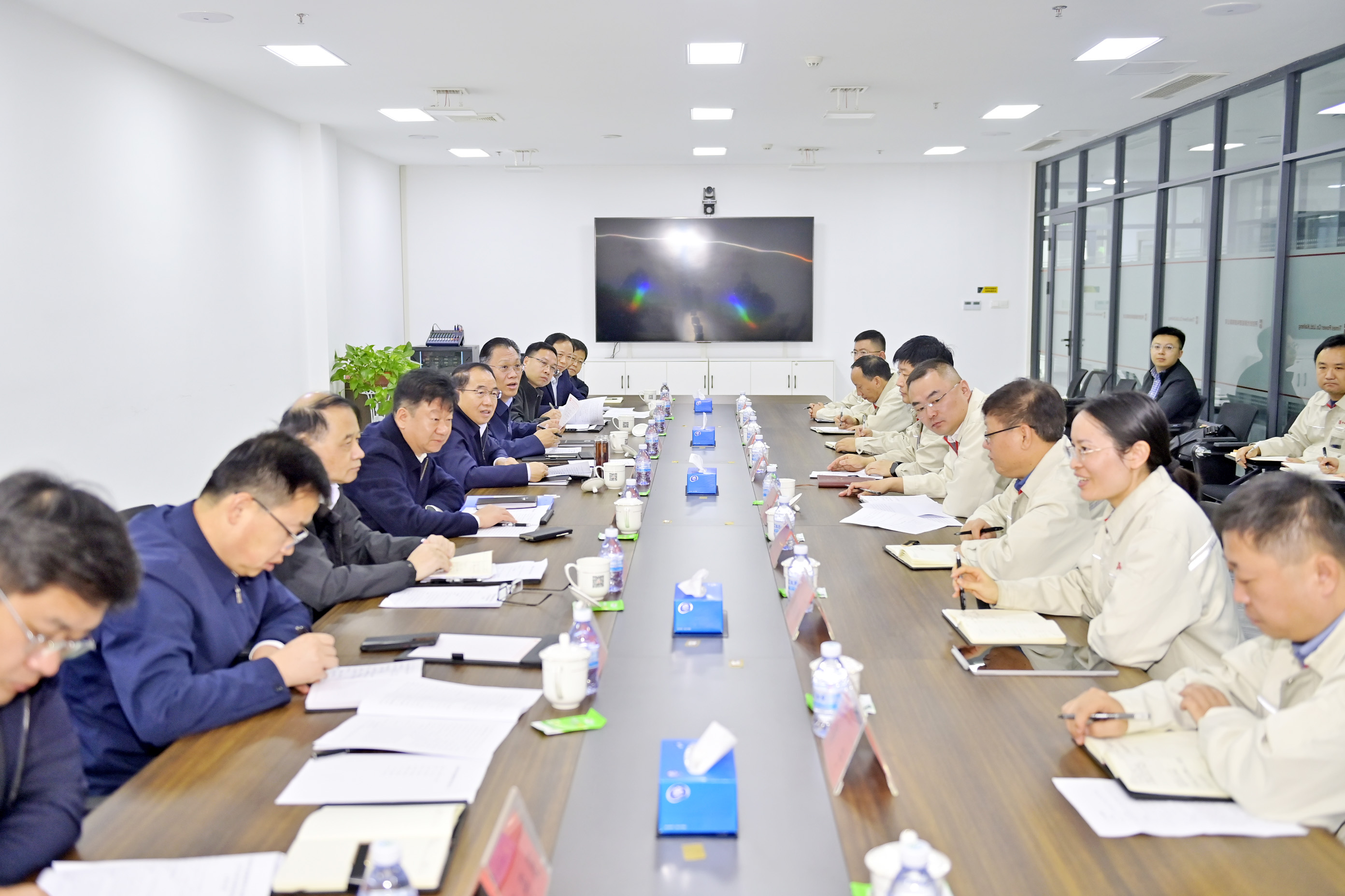 在随后召开的座谈会上,开封时代有关负责人汇报了企业当前生产经营情况、下一步工作思路以及需要集团协调解决的问题。