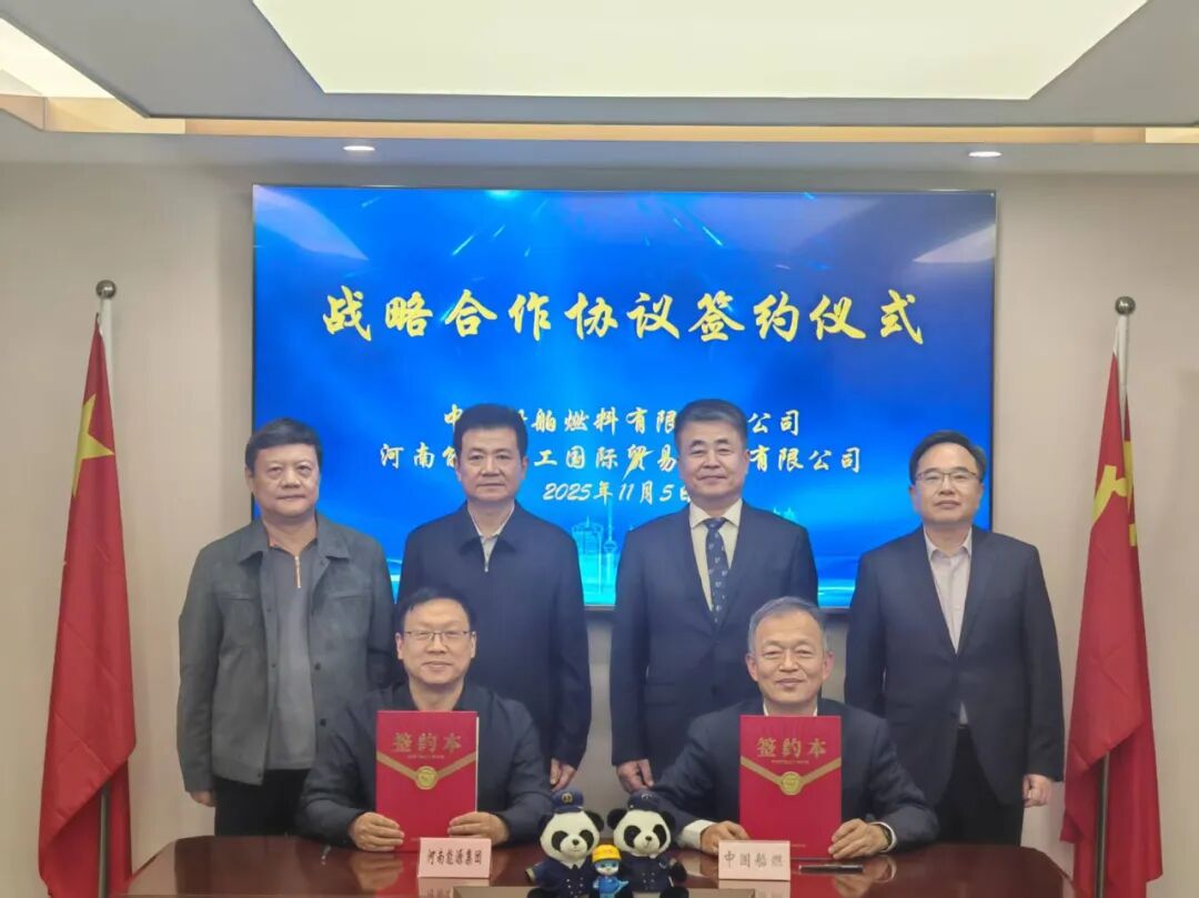 随后,杨恒一行来到中国船燃,与该公司党委书记、总经理秦岭,副总经理姜石进行座谈交流。杨恒介绍了集团战略重组和产业发展情况,表示集团正大力实施“走出去”战略,积极探索绿色低碳发展路径,与中国船燃在生物制甲醇、绿氨加注等新能源燃料领域合作前景广阔。秦岭说,双方在清洁燃料方面的合作将有力推动产业链价值提升,为区域能源结构优化和航运业低碳转型注入新动能。座谈期间,杨恒、秦岭出席河南能源国贸集团与中国船燃战略合作协议签署仪式并见签。