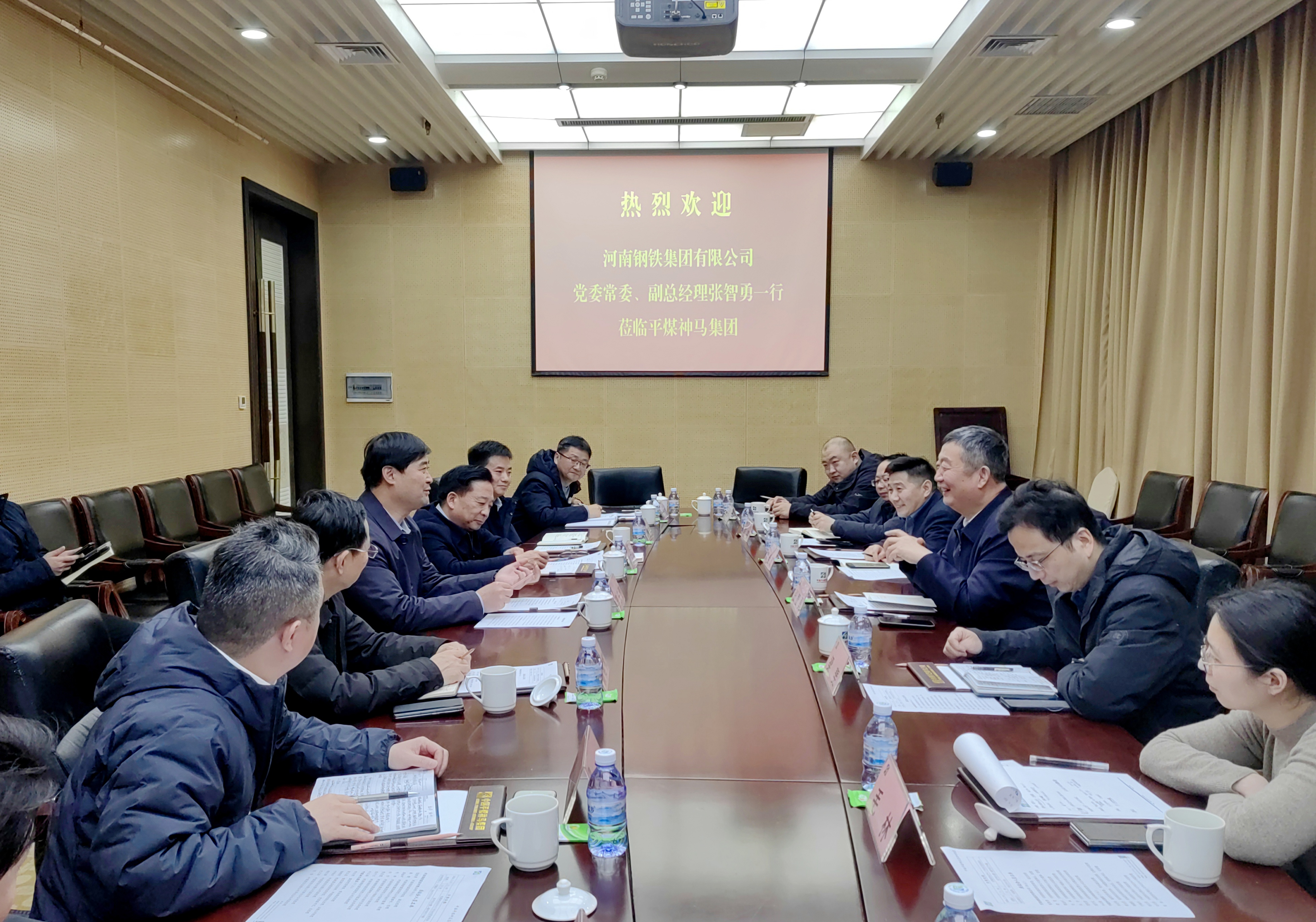 2月10日上午,河南钢铁集团党委常委、副总经理张智勇一行到中国平煤神马集团走访。在集团会议中心,集团副总经理李庆明与客人一行进行交流。