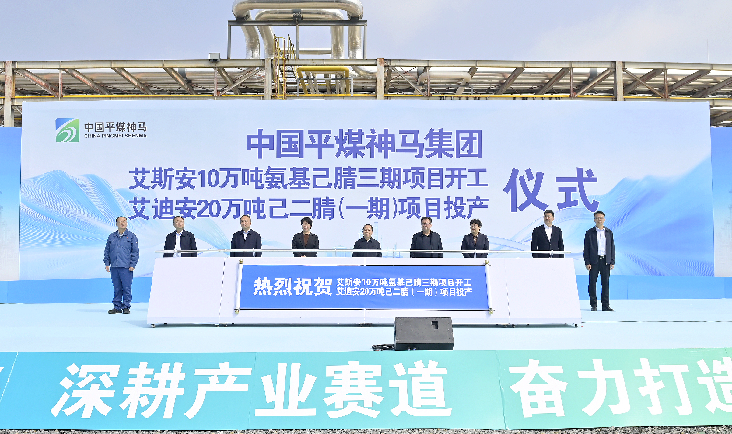 4月9日上午,中国平煤神马集团艾斯安10万吨氨基己腈三期项目开工、艾迪安20万吨己二腈(一期)项目投产仪式,在尼龙科技公司艾斯安10万吨氨基己腈三期项目现场举行。这标志着我国尼龙66产业发展迎来历史性时刻——行业“卡脖子”困局彻底被打破;集团迈入己二腈、氨基己腈“双轮驱动”的尼龙66产业发展新格局,成为全球唯一同时掌握两种尼龙66核心原材料生产技术的企业。集团党委书记、董事长李毛出席仪式,并为相关负责人授奖。