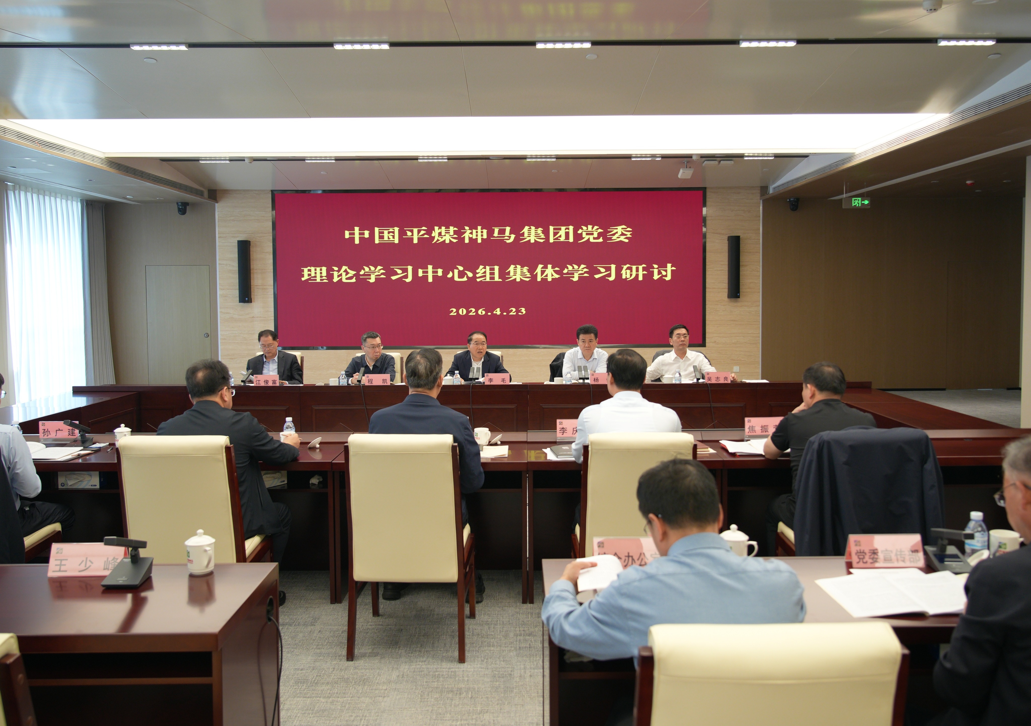 4月23日下午,中国平煤神马集团党委理论学习中心组集体学习研讨在集团双创基地举行,围绕“政绩为谁而树”主题开展专题研讨。集团党委书记、董事长李毛主持学习研讨并作重点发言,总经理杨恒作重点发言。