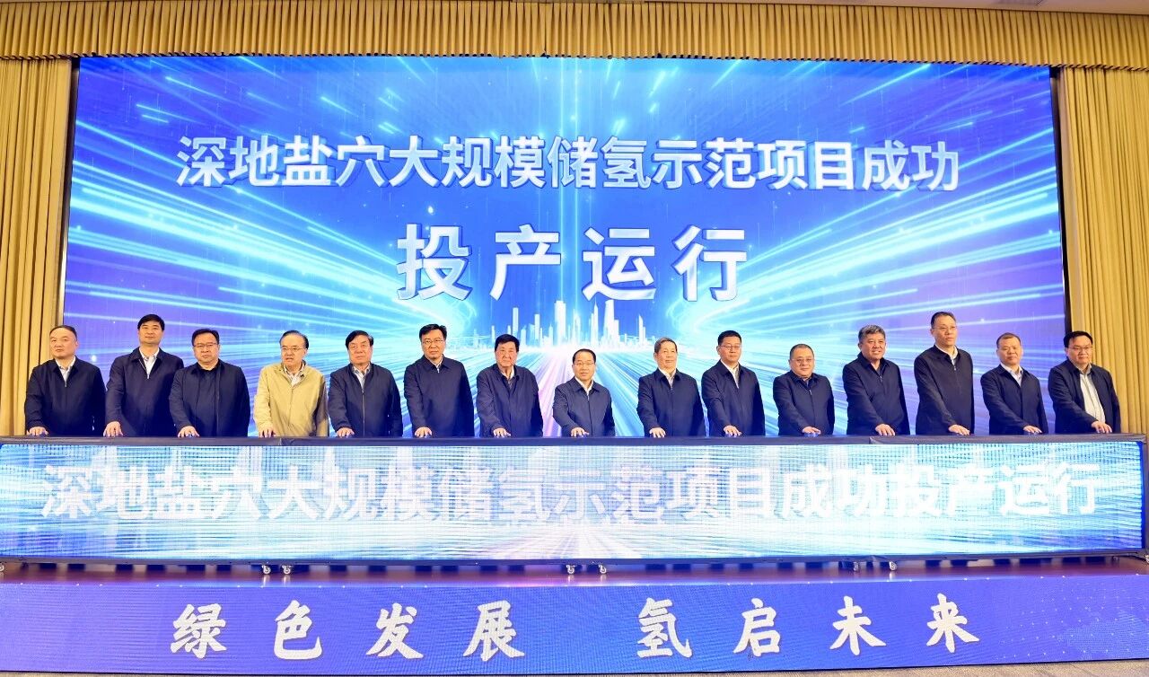 杨春和宣布深地盐穴大规模储氢示范项目成功投产运行。